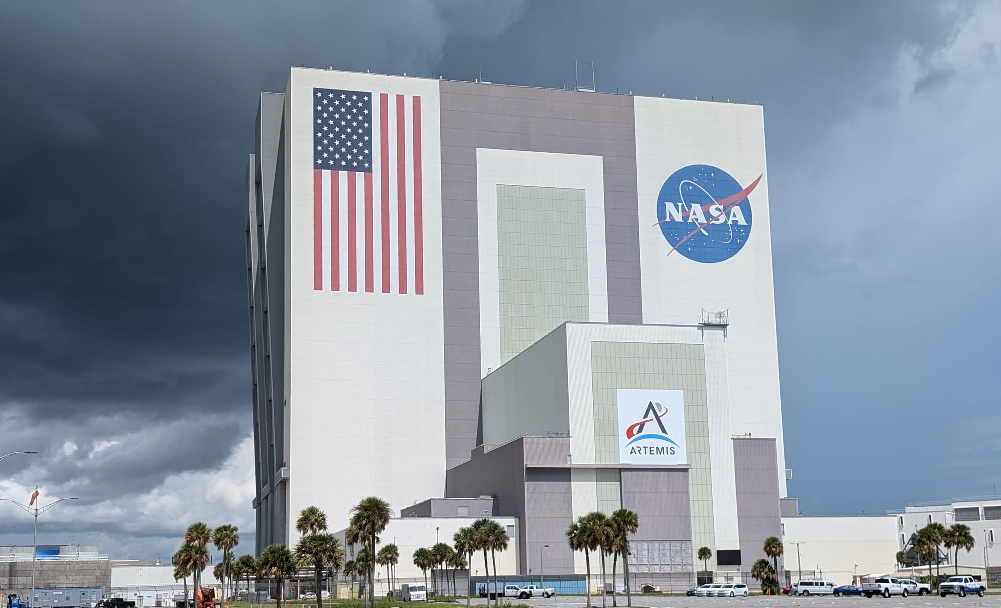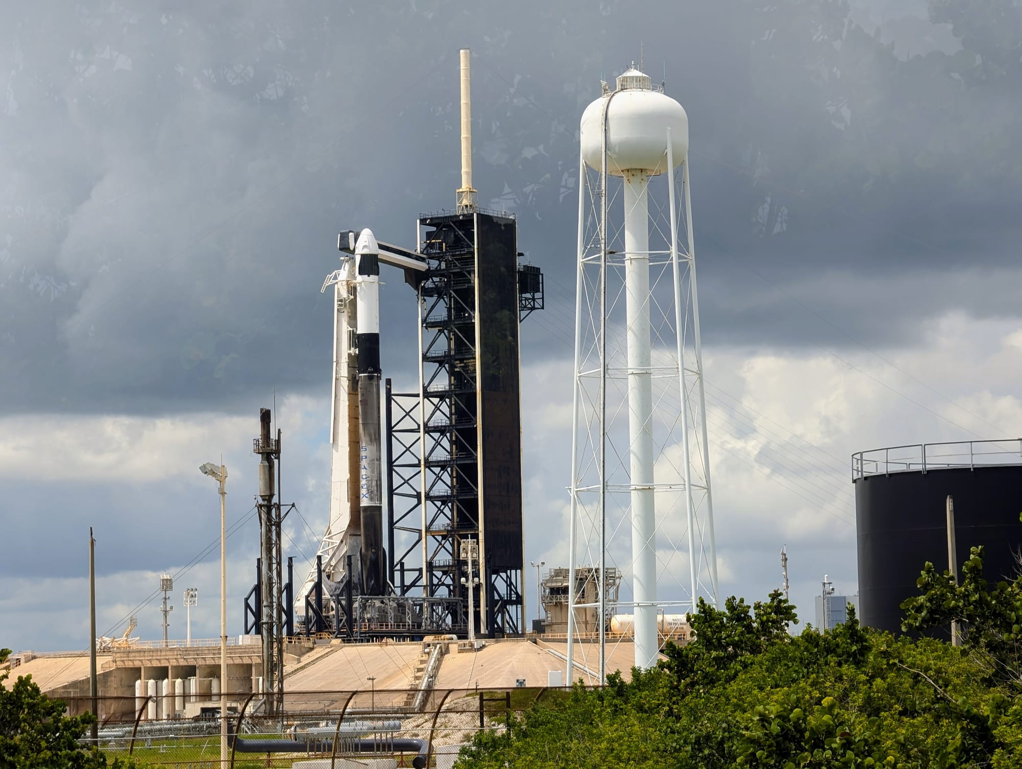Die anschließende Bustour führte uns über das Gelände vorbei am VAB und einigen Launchpads bis hin zu der abschussbereiten Falcon 9 für die Polaris Dawn Mission.