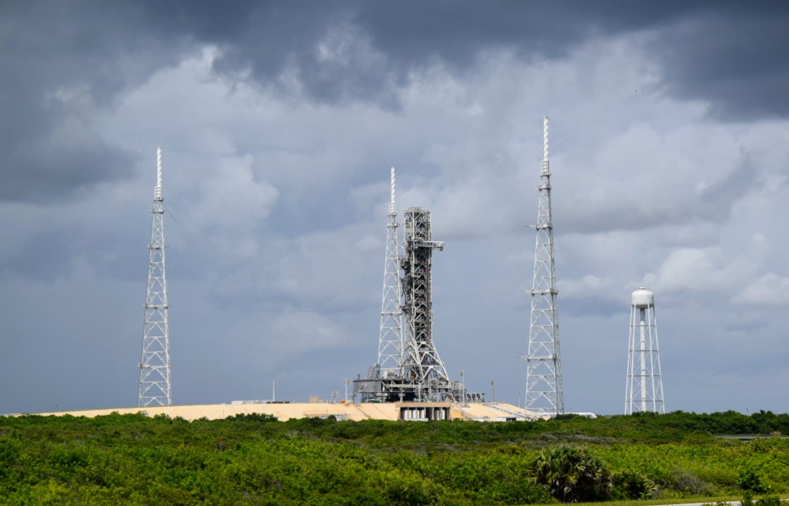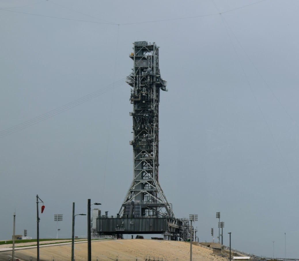 Die anschließende Bustour führte uns über das Gelände vorbei am VAB und einigen Launchpads bis hin zu der abschussbereiten Falcon 9 für die Polaris Dawn Mission.